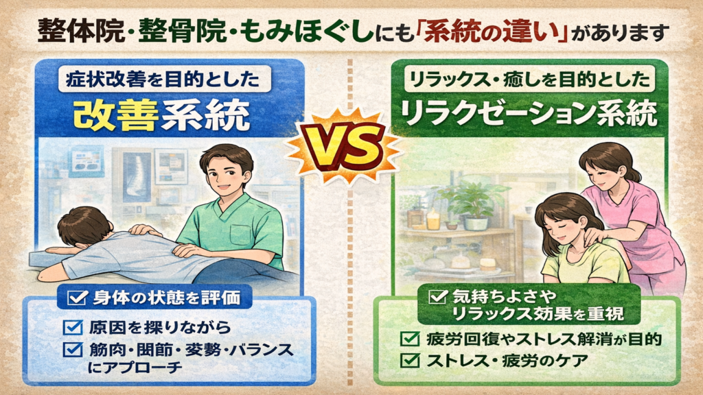 ※整体院・整骨院・もみほぐし店にも「系統の違い」があります
