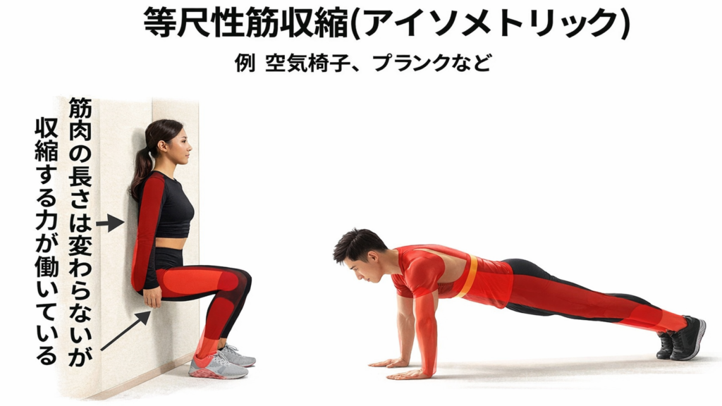 筋肉の収縮には大きく分けて以下の3種類があります。