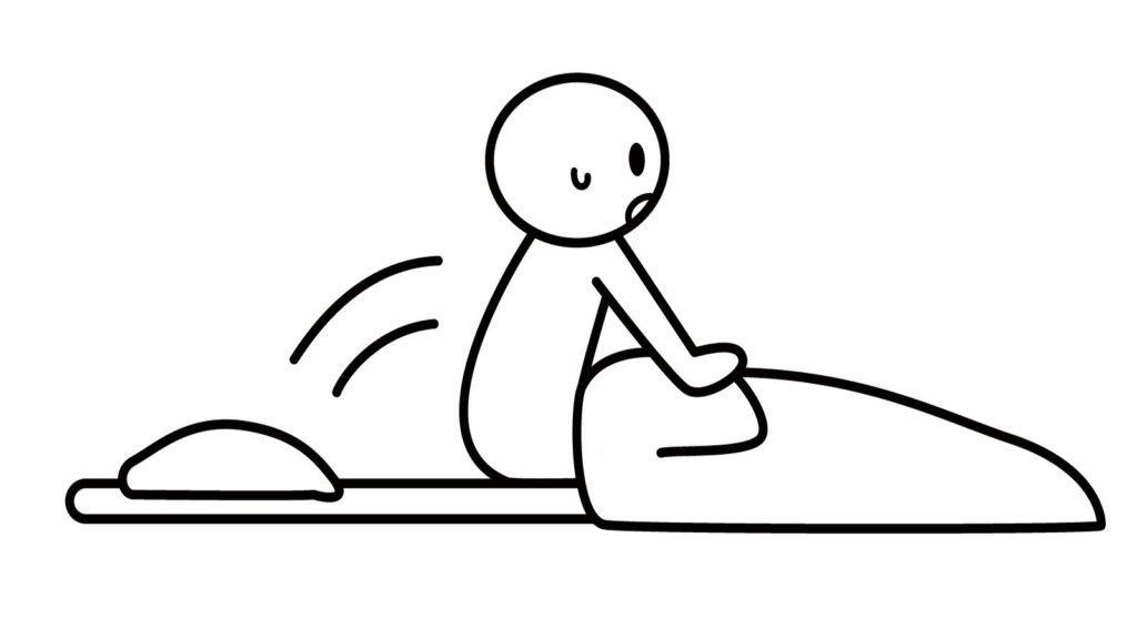 - まずはベッドや椅子に座り、ゆっくりと深呼吸を数回行う