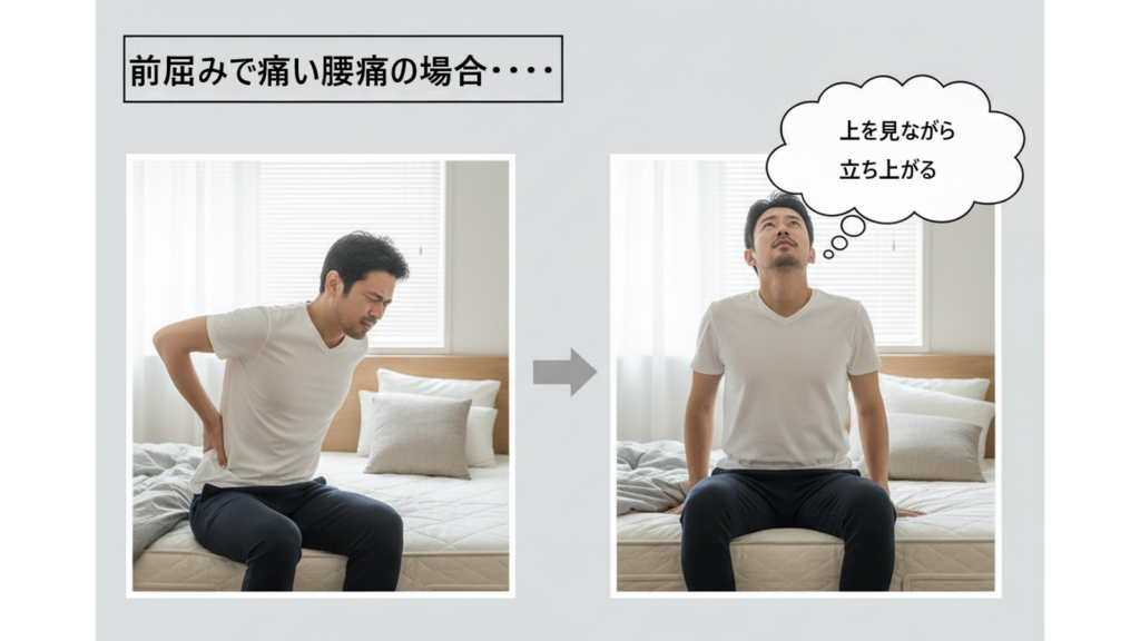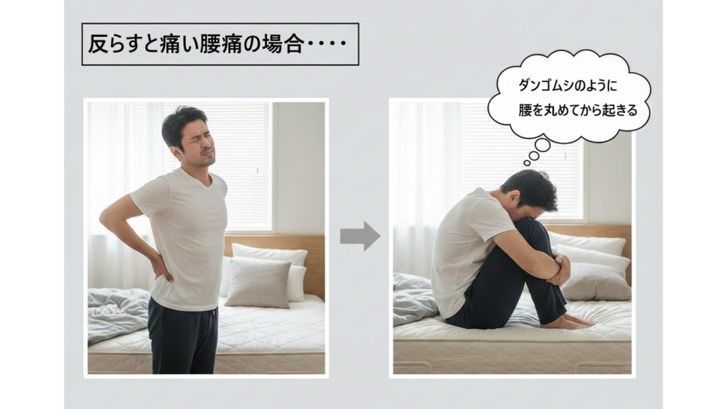 朝の一番痛いタイミングは、起き上がる瞬間です。腰痛タイプに合わせて、動き方を変えましょう。
