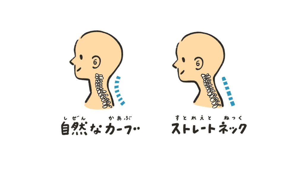 長時間のスマホ姿勢や加齢による筋力低下によって、頭が前に出た「ストレートネック姿勢」になりやすくなります。