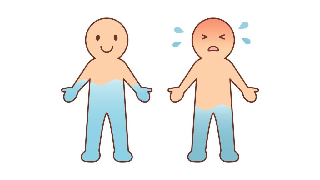 また、脱水状態では身体に水分を蓄えようと手足や顔が浮腫みやすくなってしまいます。